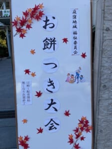 | 時間 | AM11:00頃~PM1:00頃 ※雨天決行 ぜんざい・きなこ餅 等 (ただし餅がなくなれば終わり) |