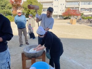 庭窪地区で長年続く伝統行事のひとつ、餅つき大会!
