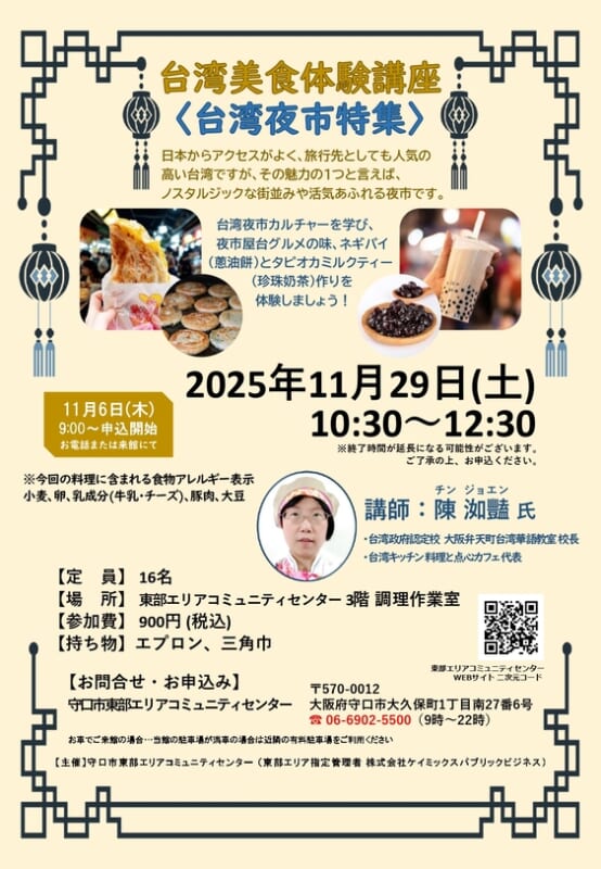 昨年も大変好評いただいた台湾講座、今年は「台湾夜市」を取り上げます
