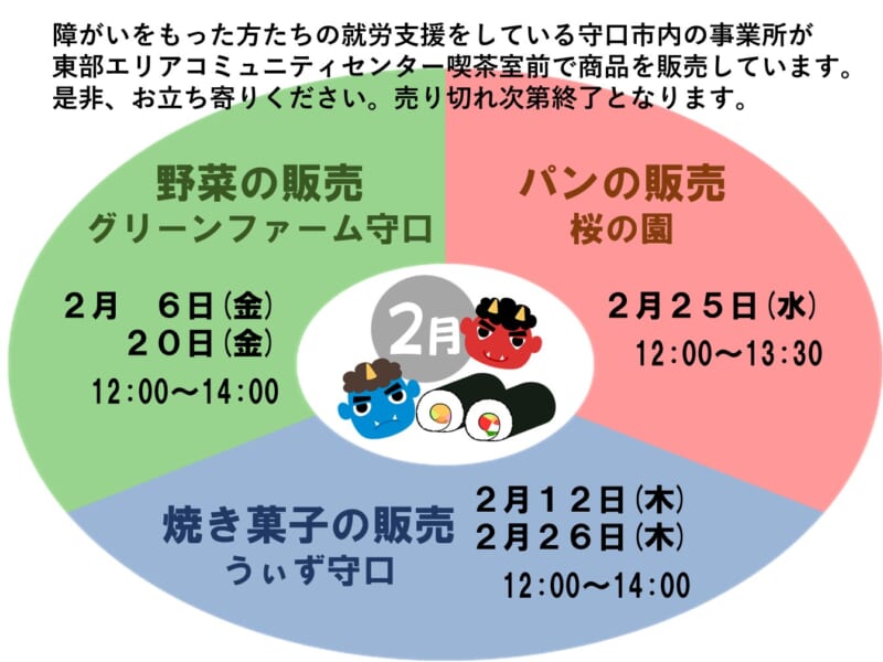 2月の野菜・パン・洋菓子販売の日程です。